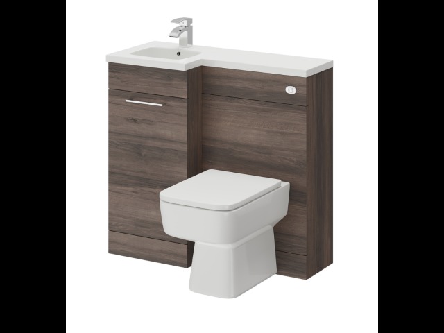 Napoli Combination Walnut 900mm Left Hand L Shaped 1 Door Vanity Unit Toilet Suite combines a WC unittogether with a basin vanity unitto create a seamless solid one-piece surface basin and worktop for a luxe finish.